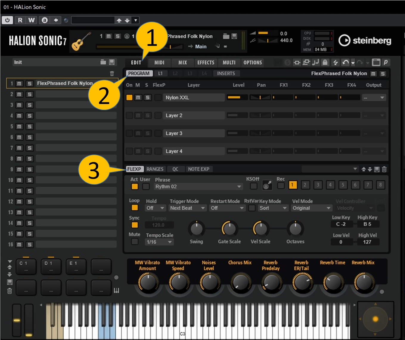 Some presets in HALion Sonic 7 loop and repeat phrases such as arpeggios or rhythm patterns. These phrase or pattern playbacks can be easily turned off.