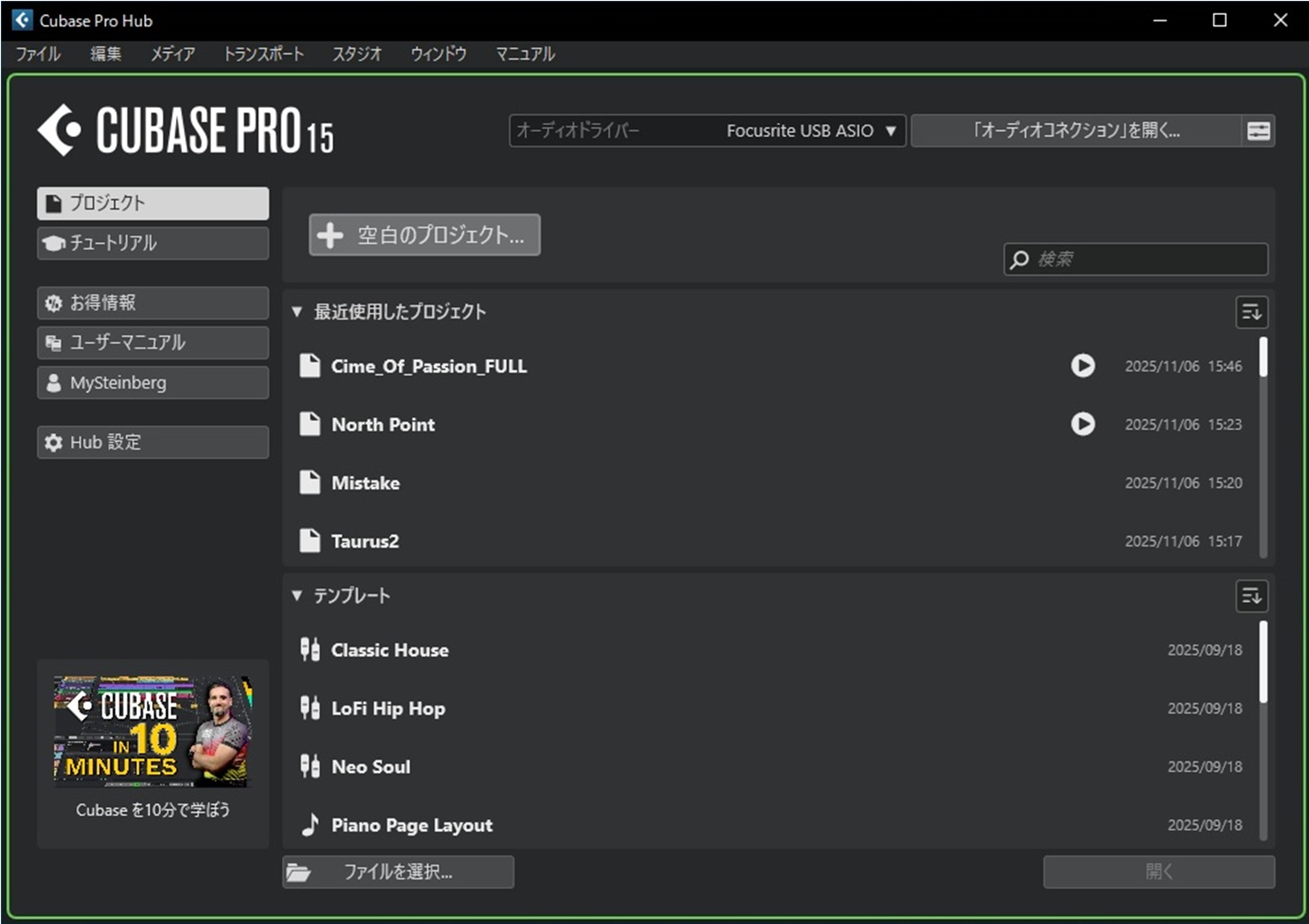 Cubaseを起動したときに最初に開く Cubase HUB のデザインが変わりました。