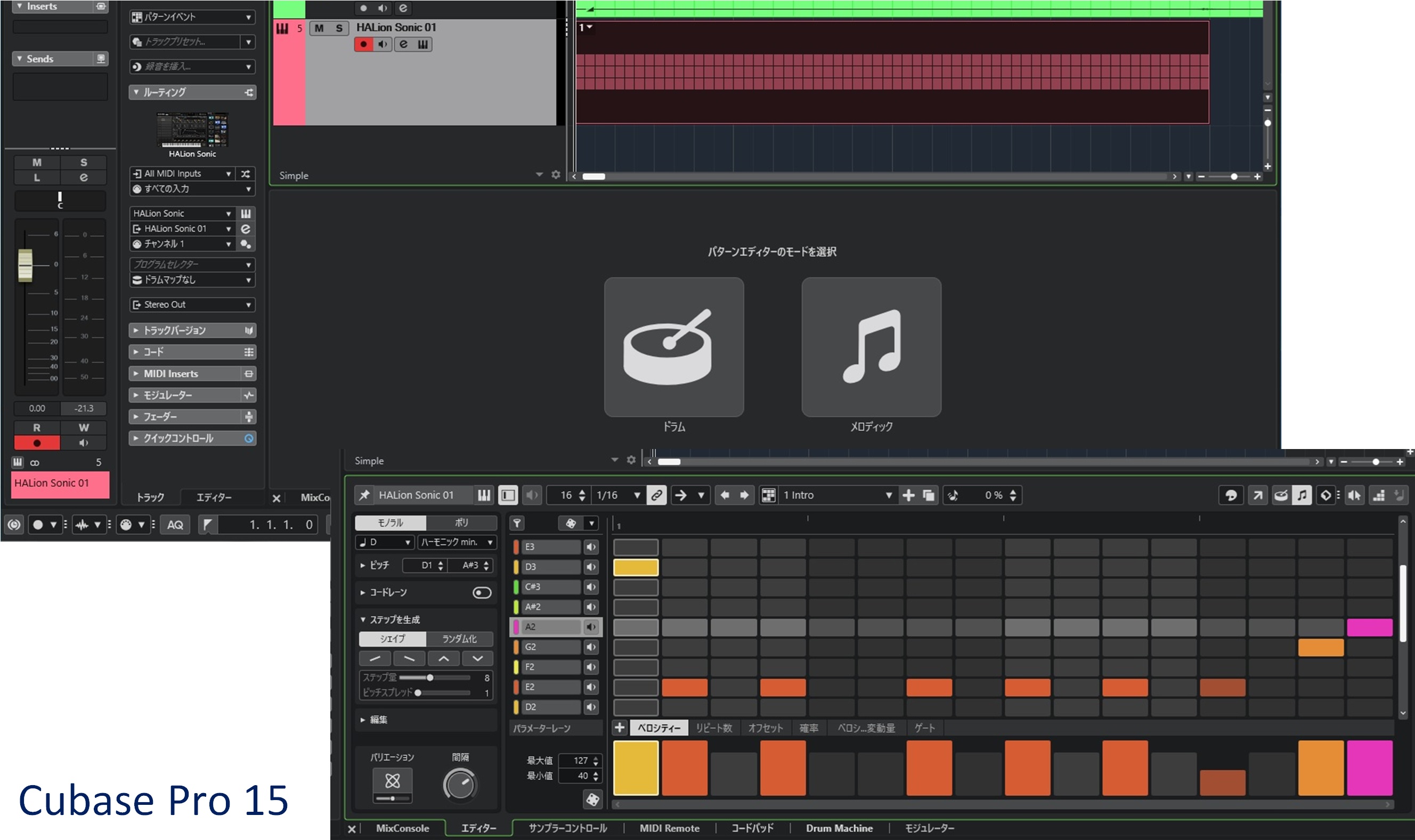 パターンエディターの機能拡張ですね。従来のが「ドラムモード」それに「メロディックモード」が加わりました。 これは Cubase 15 の目玉の一つかもしれません。マニュアルでは多くのページを割いているようです。