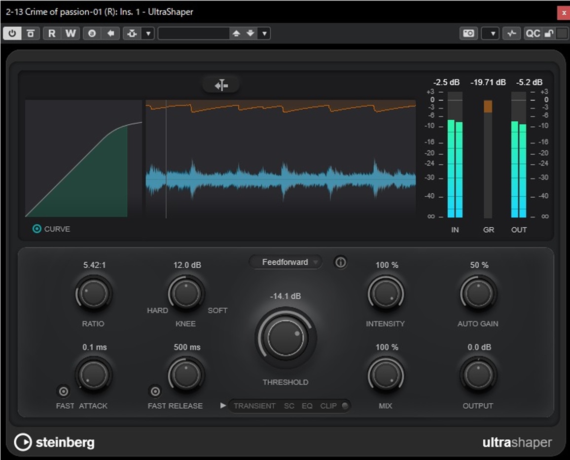 プラグインリファレンスによると「メイクアップゲインを自動調整するダイナミックレンジコンプレッサー」とのことです。イメージできますか?
