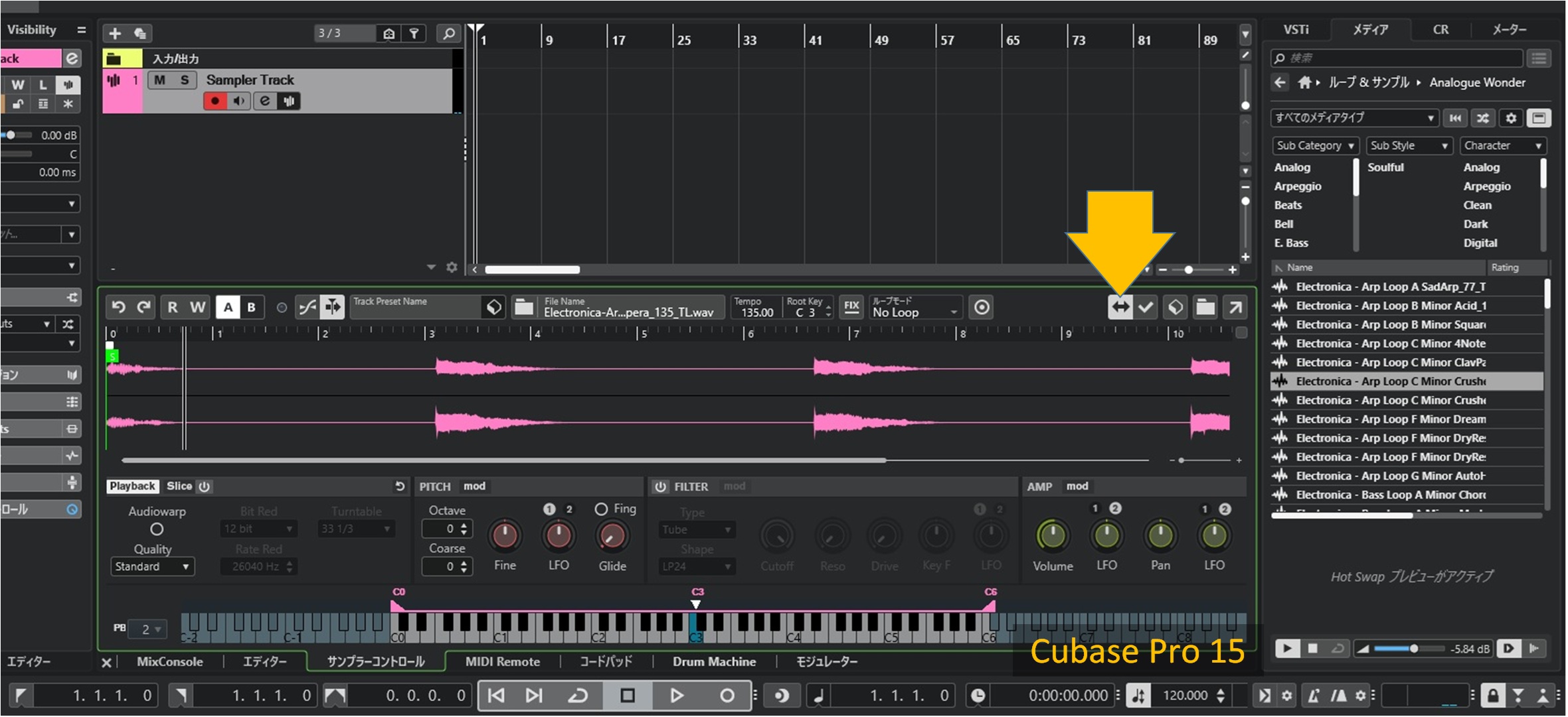 メディアラックで別のサンプルを選択するだけで、サンプルを即座に置き換えることができるようになりました。ホットスワップ機能というそうです。これは便利です。