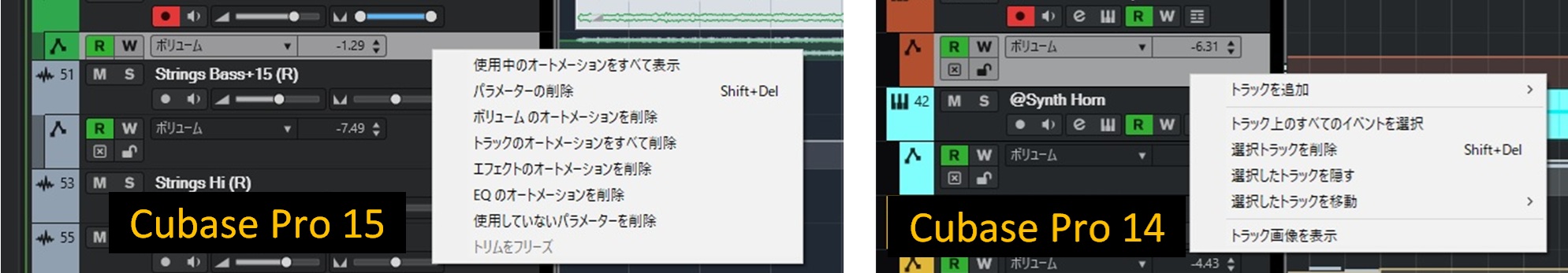 オートメーショントラックのコンテキストメニューがオートメーションに特化したものになったようです。