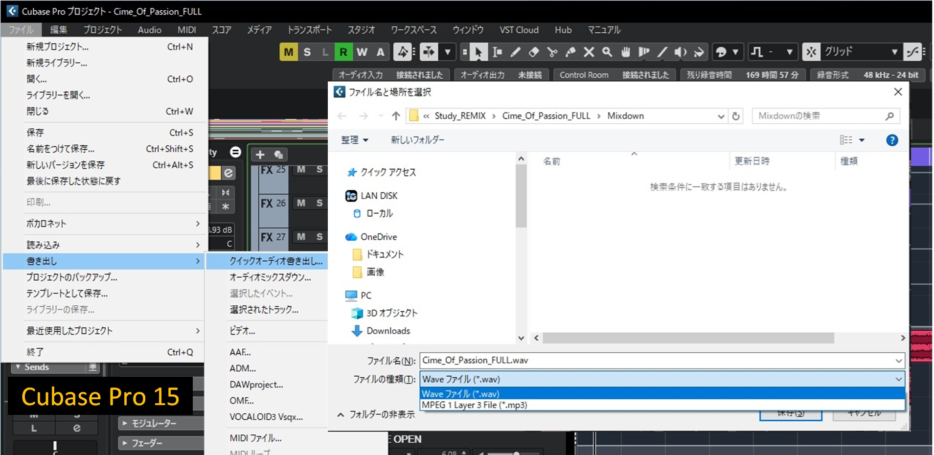 書き出しメニューの一番上に追加されたので、ついつい「オーディオミックスダウン」と間違えて開いてしまいます。