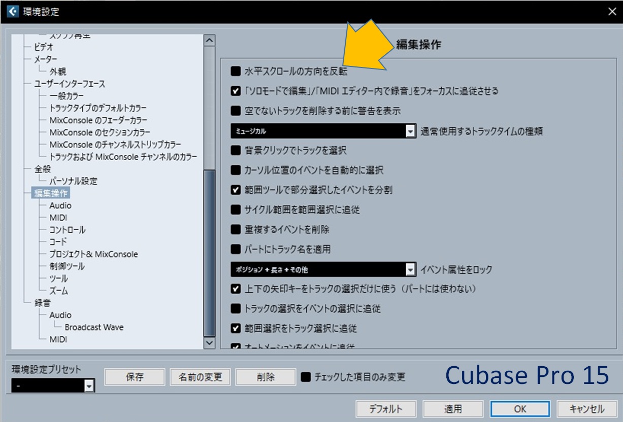 「Shift」+マウスホイール での水平方向スクロールの方向を環境設定で反転できるようになりました。