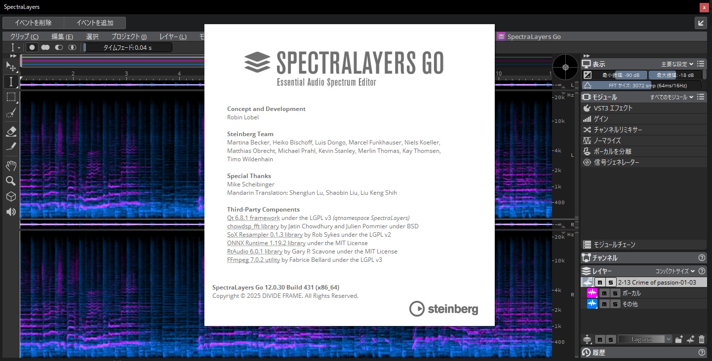 付属のSpectralayers Go が 11 から 12 にアップデートされたようです。