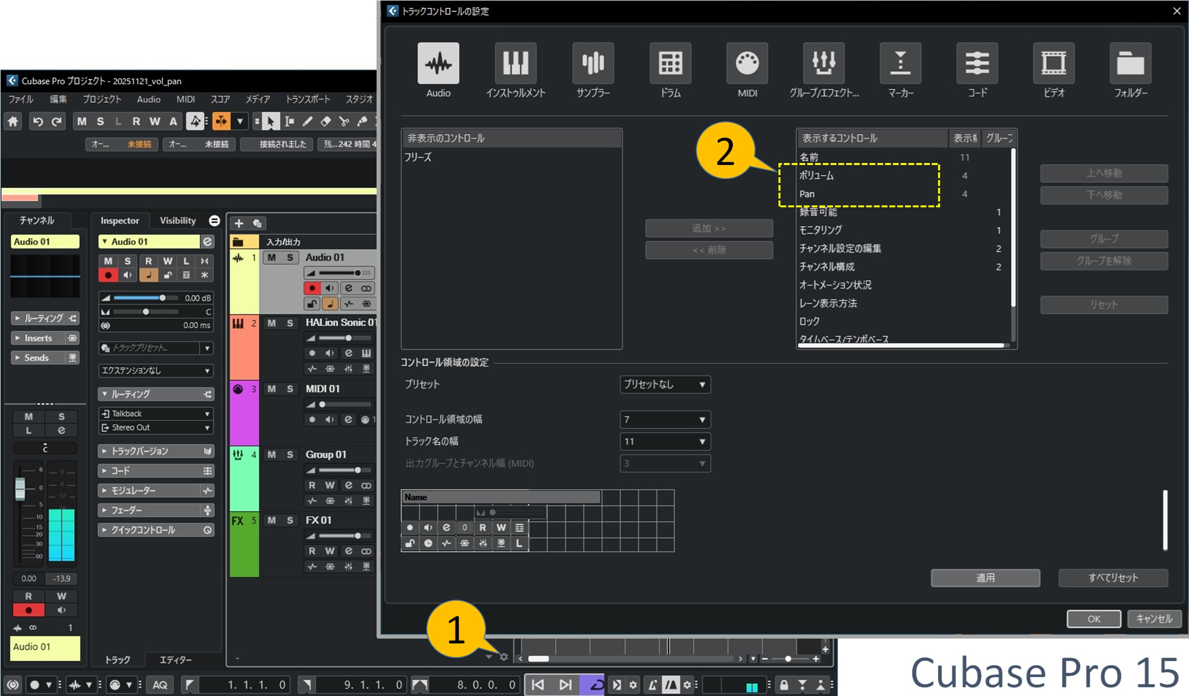 Cubase 15 の新機能『トラックコントロールへのボリュームとパンの追加』に関するトピックを補足します。