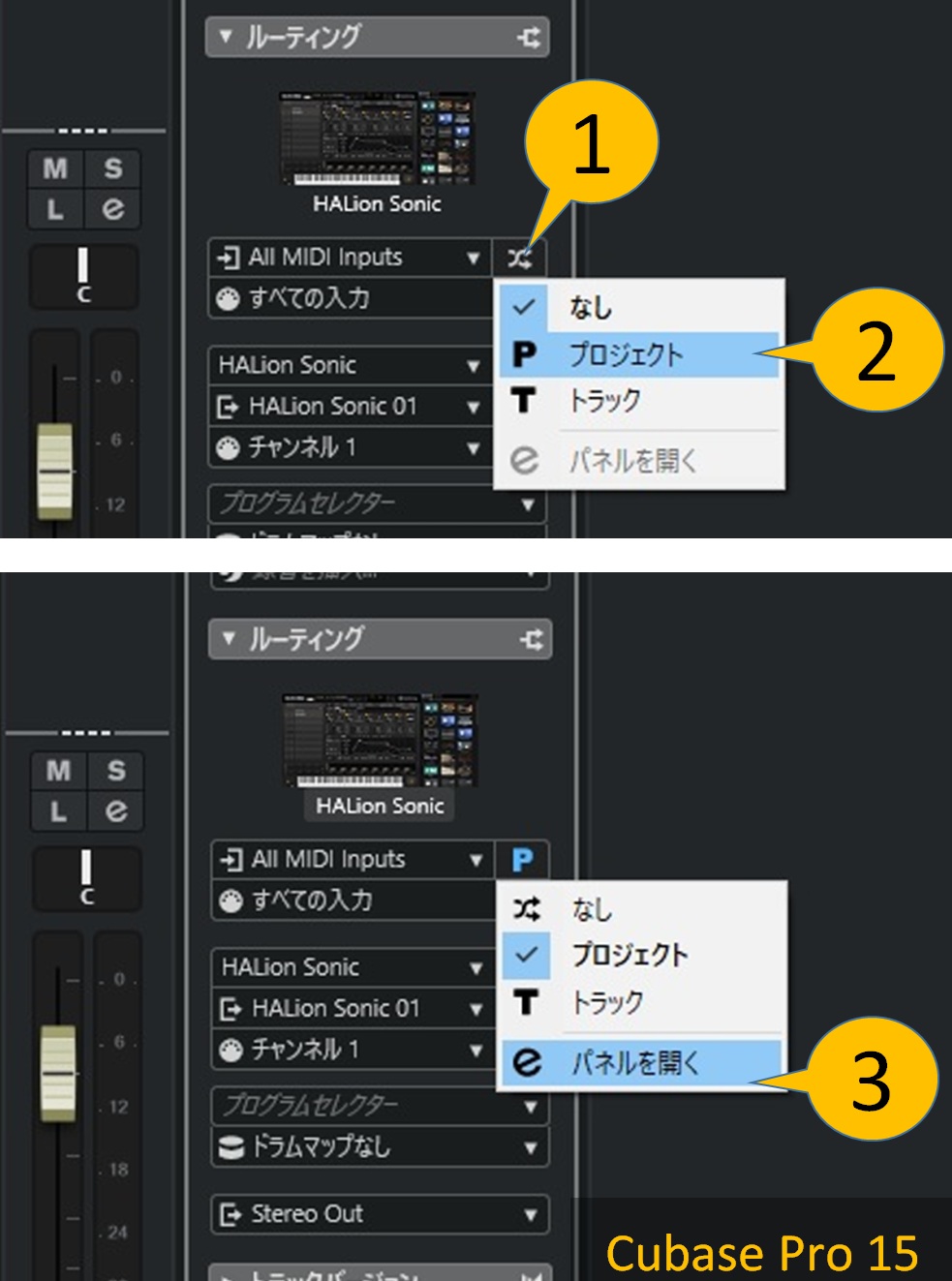 - インプットトランスフォーマーは「プロジェクト全体」と「そのトラックだけ」の2通りを選べます。ここでは前者【②】を選ぶことにします